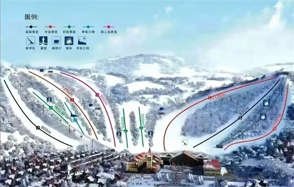 为初次体验滑雪运动的新手设计的初级道总长4000余米,3-7度,全程无明显陡坡与急转弯