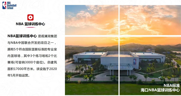 NBA篮球训练中心坐落于海口观澜湖度假区,包括多个室内篮球场和先进的专业设施。众多NBA 明星曾先后到访过海口观澜湖,科比·布莱恩特、姚明、阿伦·艾弗森等。