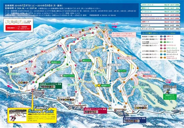 为保障孩子安全,我们优先选择酒店自营的滑进滑出雪场:X-JAM高井富士雪场和YOMASE温泉雪场(两雪场可通滑),水平足够且保证安全的前提下,也可在教练评估后在其他5座雪场中选择。