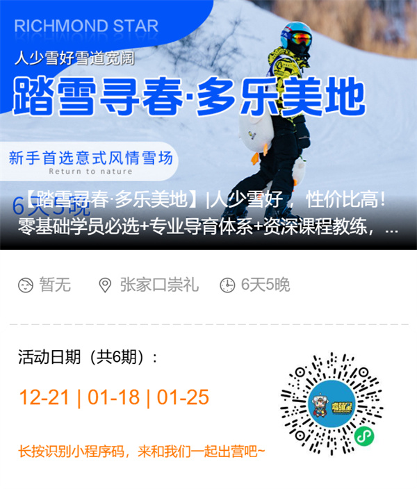 2025/26崇礼多乐美地滑雪冬令营(6天)沐蘭汤温泉2人酒店,资深教练团队