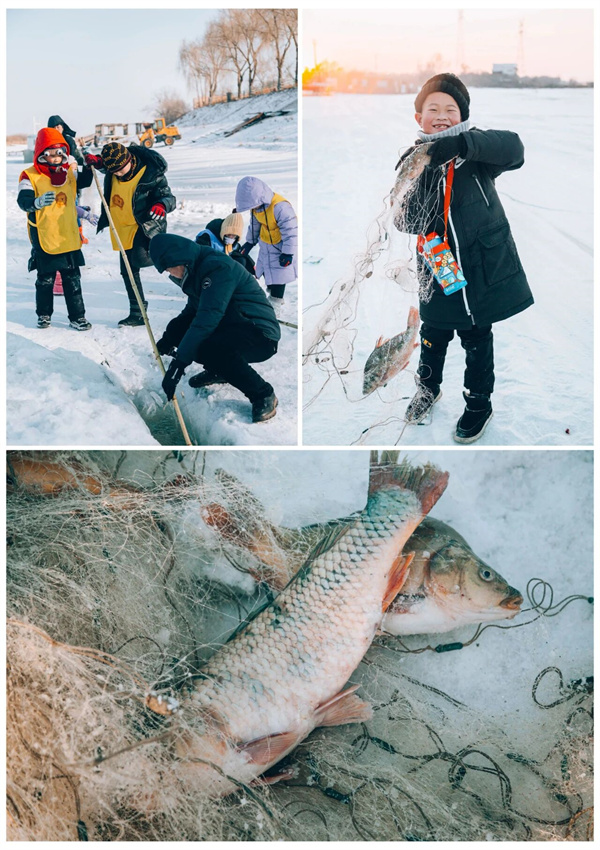 当巨网从冰洞中拉出,肥美鲜鱼在寒空中翻跃银光