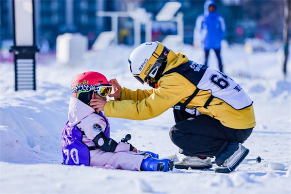 教练员每日上雪训练期间,全程安全看护陪伴和滑雪技能保障。