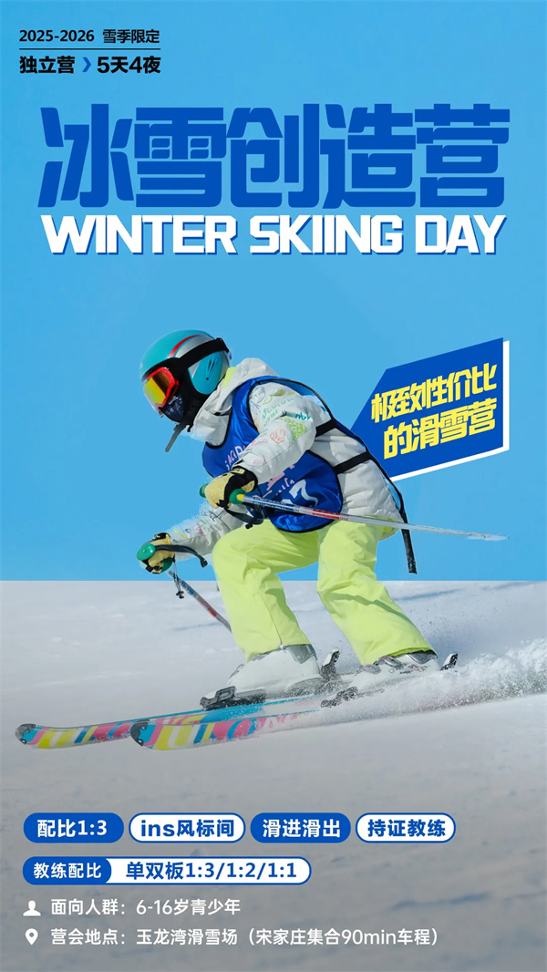 2026唐山·玉龙湾冰雪创造滑雪冬令营(5天)单双板1:1
