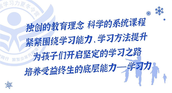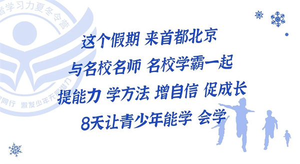“我能学我会学”学习能力提升北京营是围绕学习力三要素(学习动力、学习毅力、学习能力)之一的学习能力,让青少年与优秀者同行,通过名师专家系统的学能课程、名校学霸系统的学习方法分享等科学有效的课程和体验互动式的教学方式,全方位提升青少年的学习能力,包括专注力、记忆力、思维力、情绪力、时间管理能力、自主学习能力……以及学习掌握清北优秀学子的高效学习方法,引导青少年建立学习自信,点燃学习热情,开启坚定的学习之路,愿学、能学、会学,从而获得决胜未来的关键底层能力——学习力。