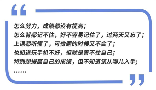 这些情况主要是因为不会学,没有好的学习方法,学习能力不够造成的,这种情况下会让青少年渐渐对自己失去信心,对学习失去兴趣,时间久了很可能就从“不会学”变成“不爱学”或厌学、弃学了。